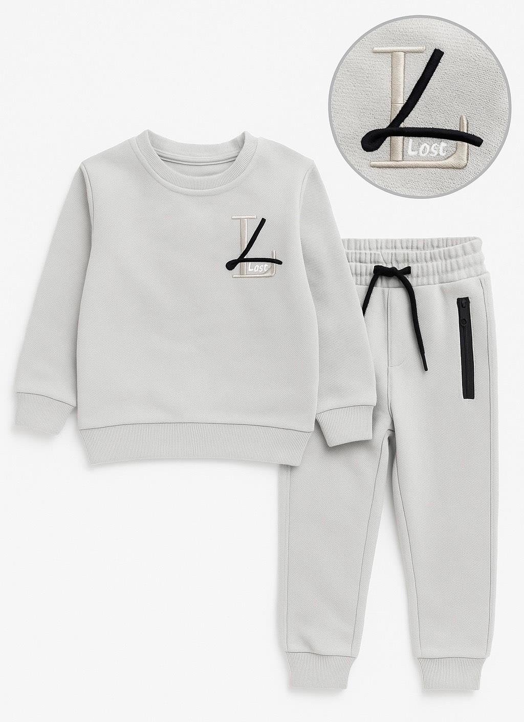 9937 Last Yazılı Nakışlı Erkek Çocuk İki İplik Penye Takım-GRİ