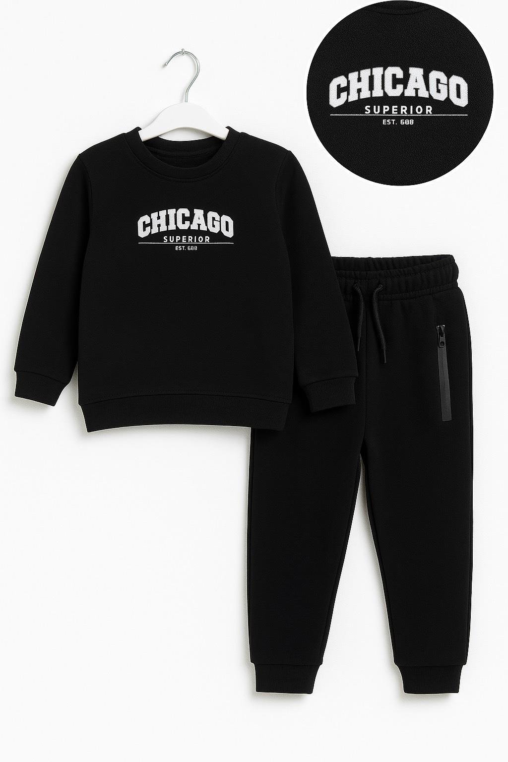 9941 Chıcago Yazılı Baskılı Erkek Çocuk İki İplik Penye Takım-SİYAH