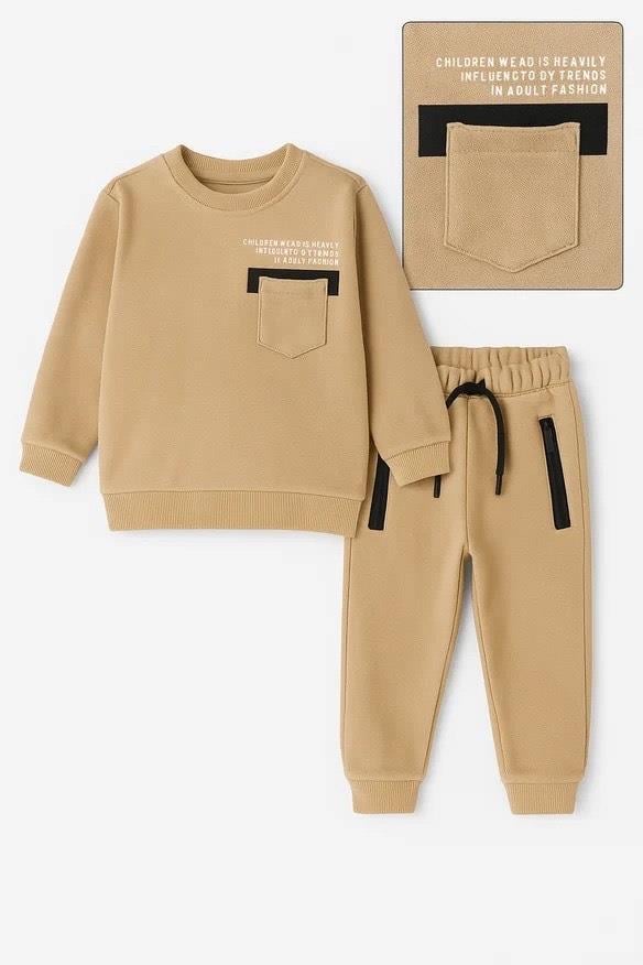 9959 Chıldien Yazılı Baskılı Erkek Çocuk İki İplik Penye Takım-BEJ