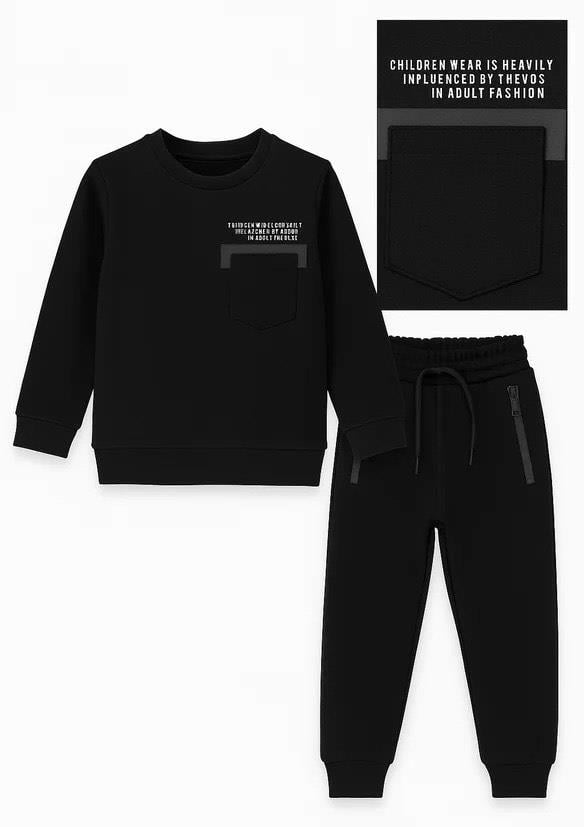 9960 Chıldien Yazılı Nakışlı Erkek Çocuk İki İplik Penye Takım-SİYAH